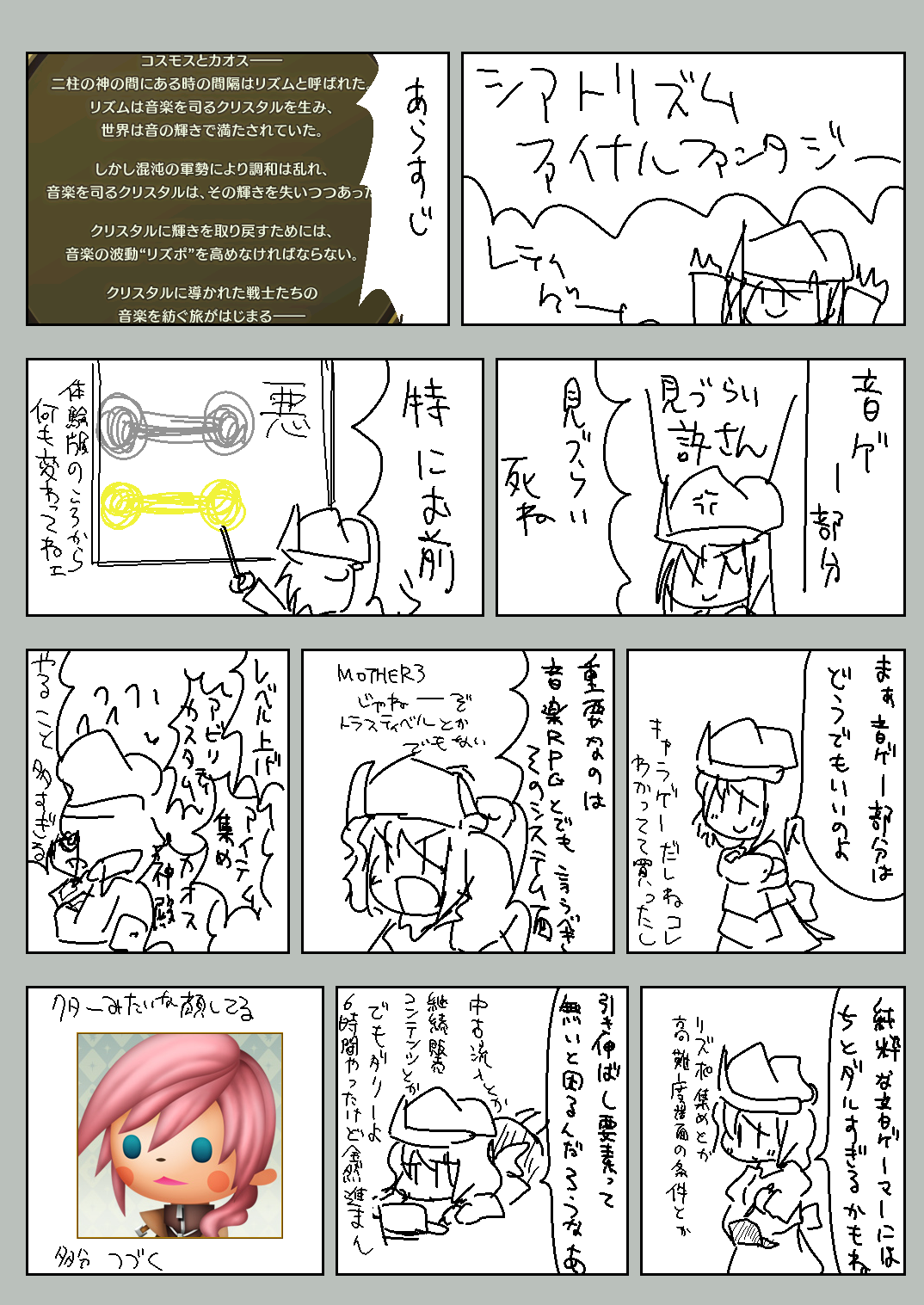 前の時点ではまぁ…まぁ許せたかな…って感じだけどもう我慢の限界だよ、こんな音ゲー出して恥ずかしく無いの、FF13の時も思ったけどプレイ時間引き延ばしの要素はホントクソ!25年間FF作り続けて出来るゲームがこれかよ!猛省すべきであるとレティさんは主張します!