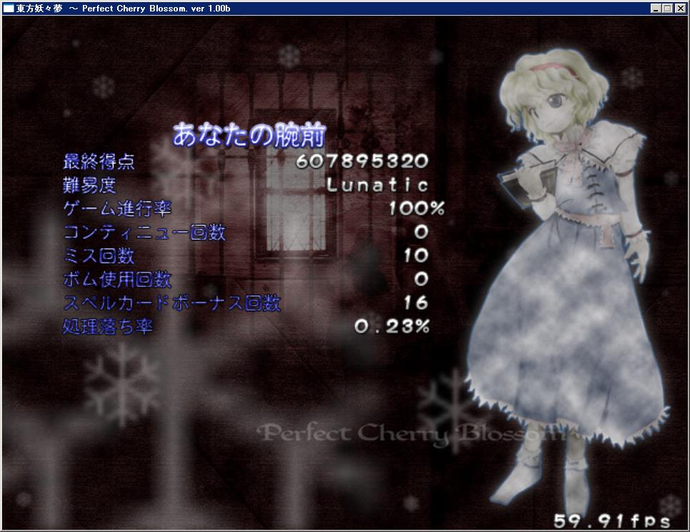 しかしまあ、火力はゴミクズだけど道中の難易度はそれなりに抑えられるし、判定が小さい(笑)とかいうプラセボ効果は得られるからまあ基本的なキャラなのかもね。でもレティさんこんなん選ぶくらいなら咲夜A選べよって言う