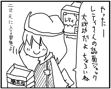 しかしまあ、火力はゴミクズだけど道中の難易度はそれなりに抑えられるし、判定が小さい(笑)とかいうプラセボ効果は得られるからまあ基本的なキャラなのかもね。でもレティさんこんなん選ぶくらいなら咲夜A選べよって言う